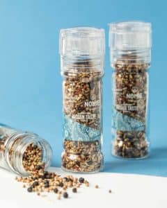 | Contient | Graines de Fenouil torréfiées ⋅ Ail ⋅ Poivre Noir Tellicherry ⋅ Graines de Cumin torréfiées ⋅ Coriandre torréfiée, Nora ⋅ Jalapeno rouge |